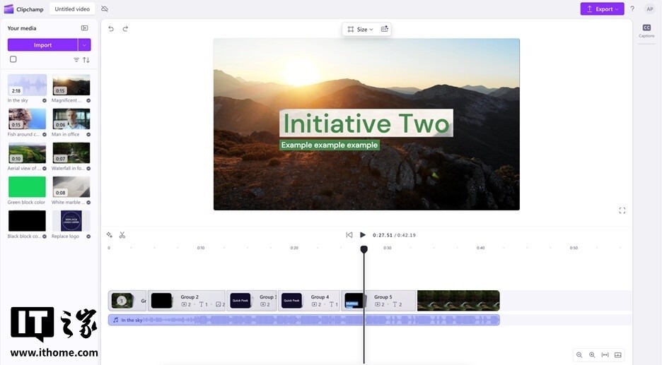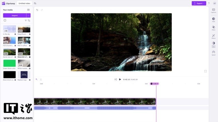 Clipchamp 的编辑界面,作为其使用频率最高的部分,也进行了重新设计。微软声称此次设计的目标是使界面“简洁且适合初学者使用”。其中,显著的改进包括让导航更加直观。例如,侧边栏和时间轴现在可以折叠,时间轴的缩放功能变得更加精准,同时新增了全屏播放功能。此外,撤销和重做操作经过调整,提供了更好的控制体验;用户可以根据需要随时更改视频的宽高比;并且新增了 AI 生成字幕的功能,用户可以为视频添加智能生成的字幕。